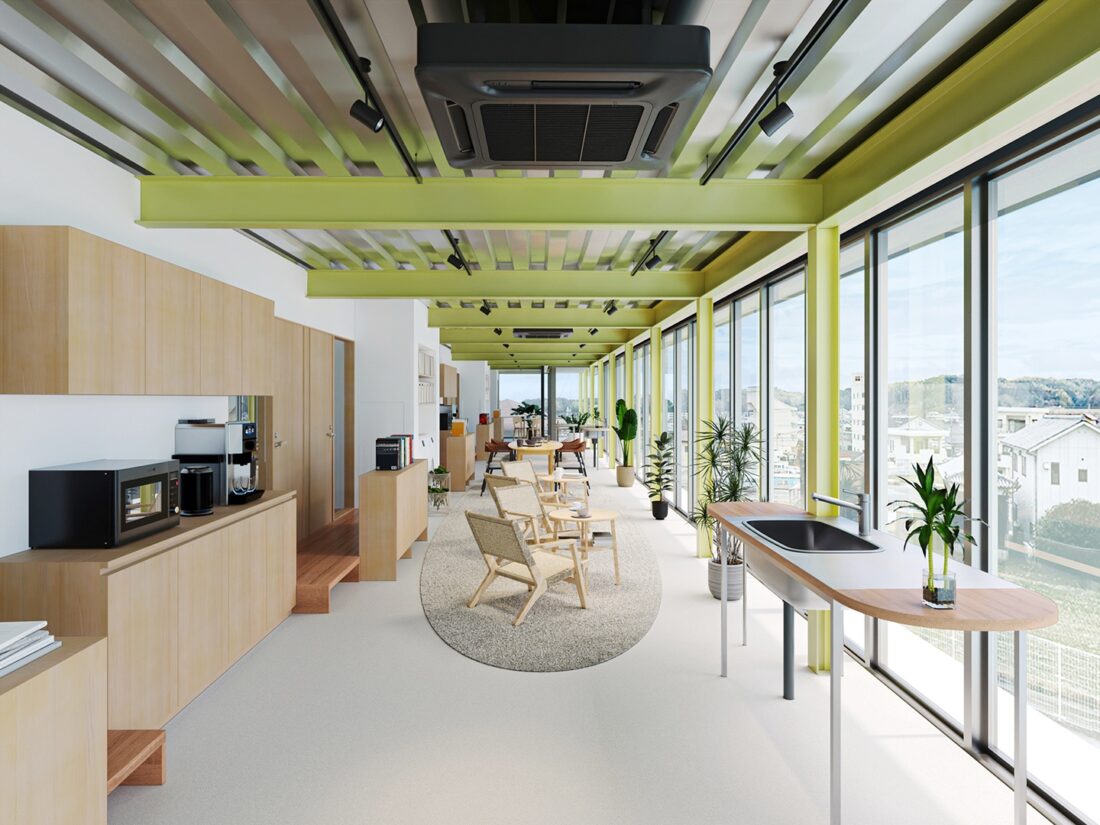 現在進めている社員寮プロジェクトでも、色は悩ましい問題だ。無難に無彩色でまとめることもできる。だが屋内に露出する2.7メートルピッチの柱梁を黄色に塗ろうと考えている。奥行きの長い空間に並ぶ構造体を強調し、リズムを与え、5.4メートル間隔で繰り返す要素――キッチンやサイドボード――と和音のように響かせたいのだ。